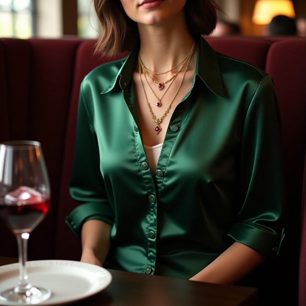 • Satin Blouses with unbuttoned low look for jewel tones Calculator